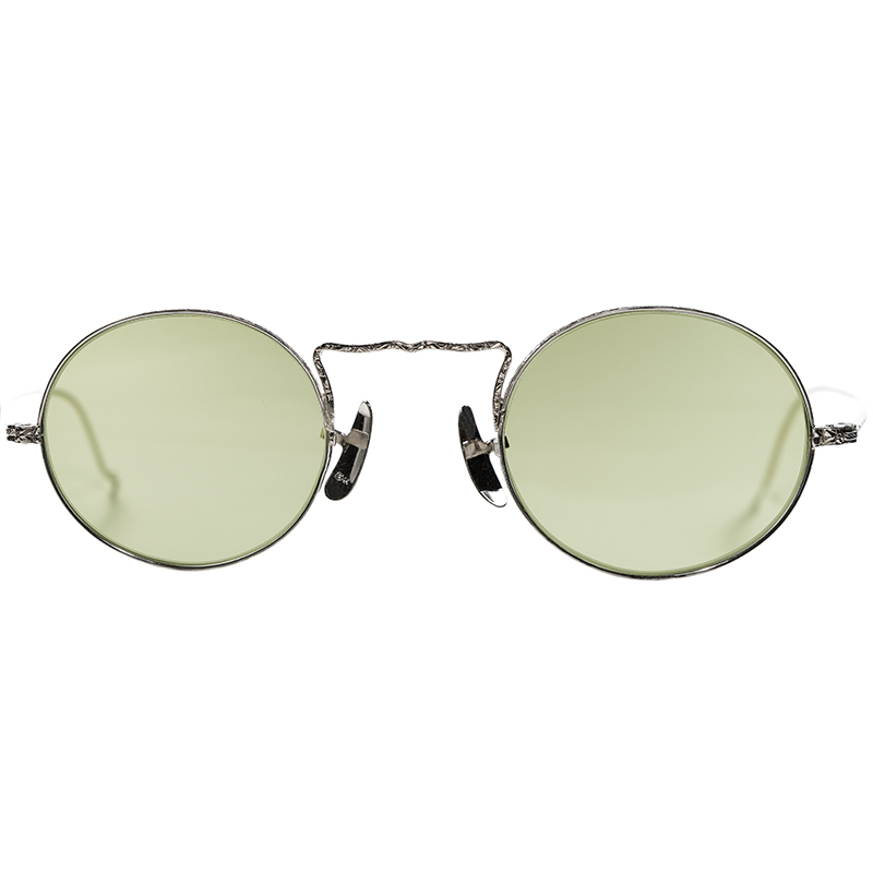造形美を極限まで引き出すため、度なしの特別製作セージグリーン2カーブフラットガラスレンズがデモレンズとしてインストールされておりますが