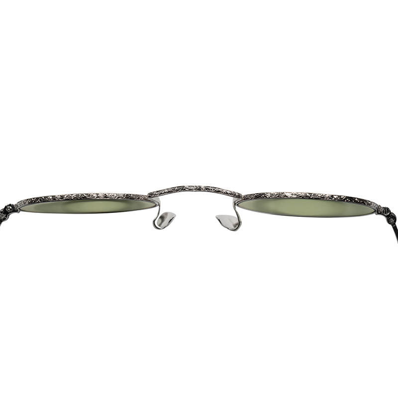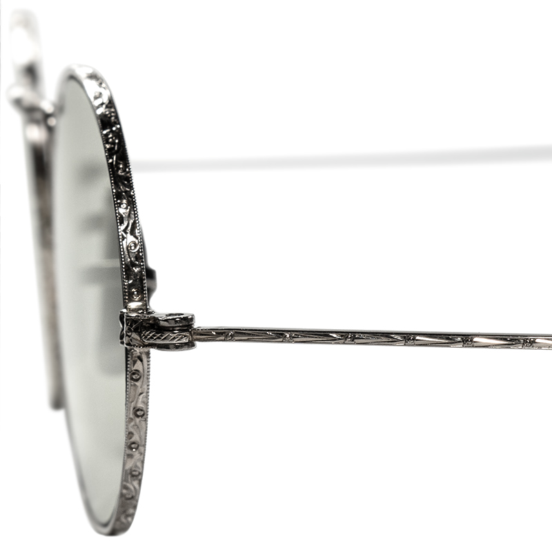 フロントには曲線的な模様とドットの彫金、テンプルには直線的な模様とドットの彫金という2パターンの手彫りの非常に繊細なマスターグレードクラスの手彫り彫金が採用され、