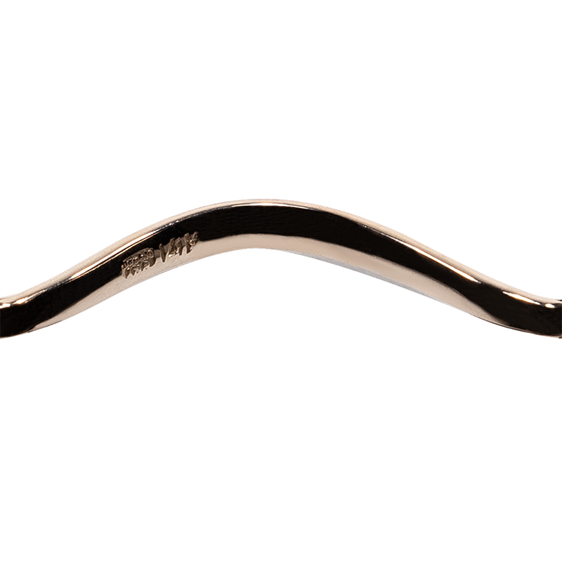 黄色身が少なくシャンパンゴールドのような淡いトーンのイエローゴールドの金無垢素材が最大の特徴となっており、