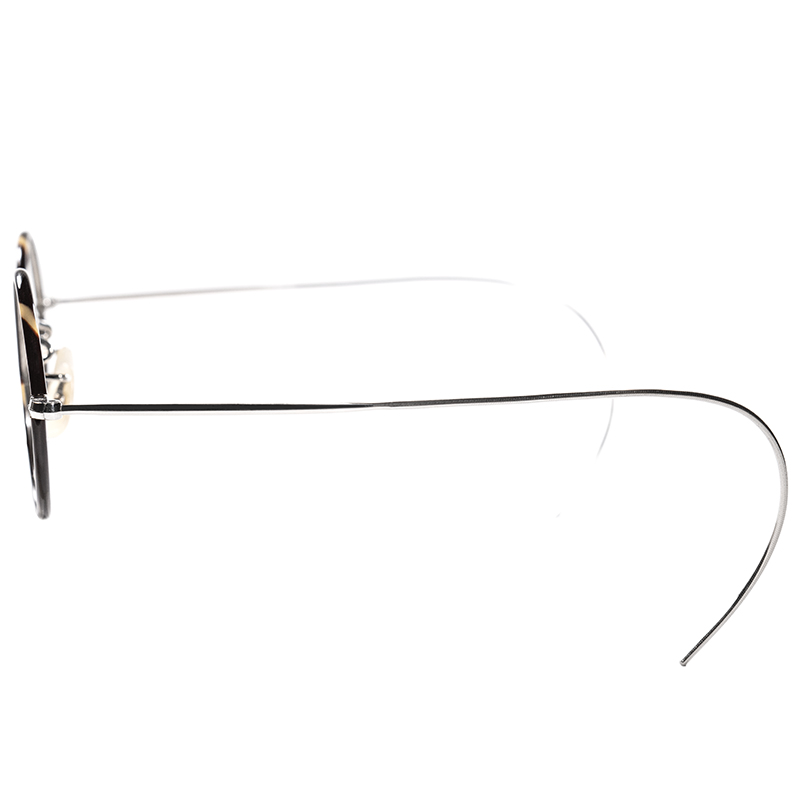 遠目ほぼブラックに近いセルロイド素材のセル巻きパーツや、このあたりの時代のメタルフレームの象徴ともいえるシェル柄のベークライト製パッドが採用された
