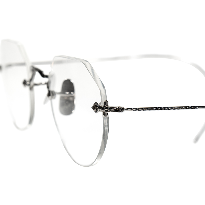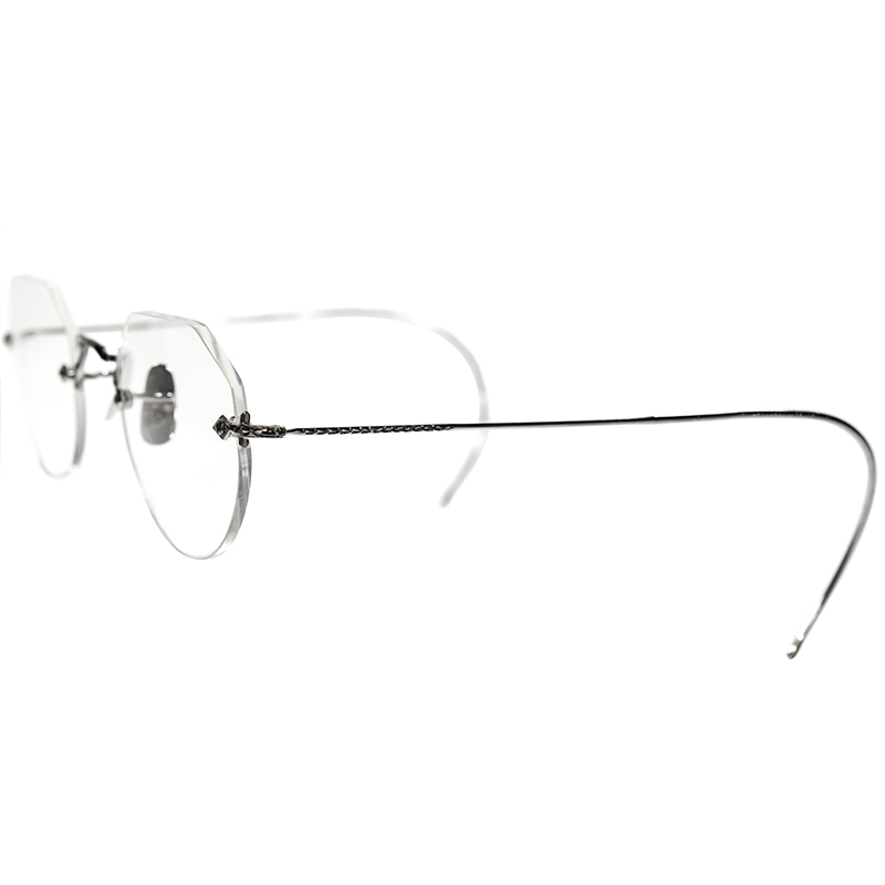 鎧部分とテンプルには同様の様式の手彫り彫金がさりげなくあしらわれており、比較的控え目な仕上がりがアーリー期のSHURONらしい仕上がりとなっている。