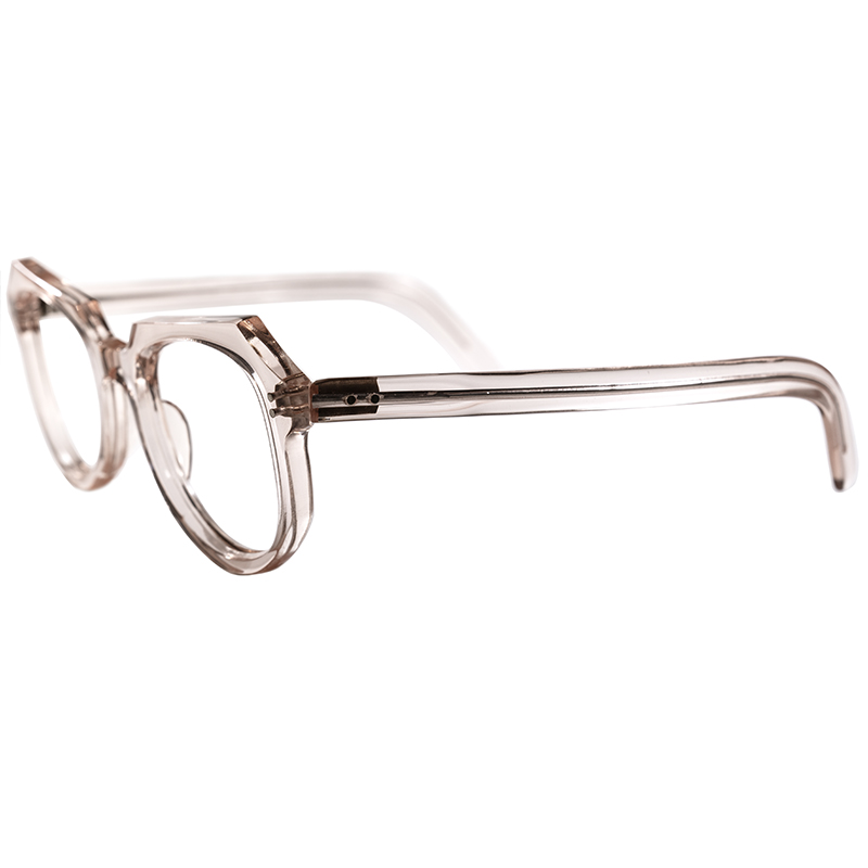着用時に眉に沿うような緩やかに釣り上がったクラウンパントとキャットアイを掛け合わせたような独特なアバンギャルドなシェイプが