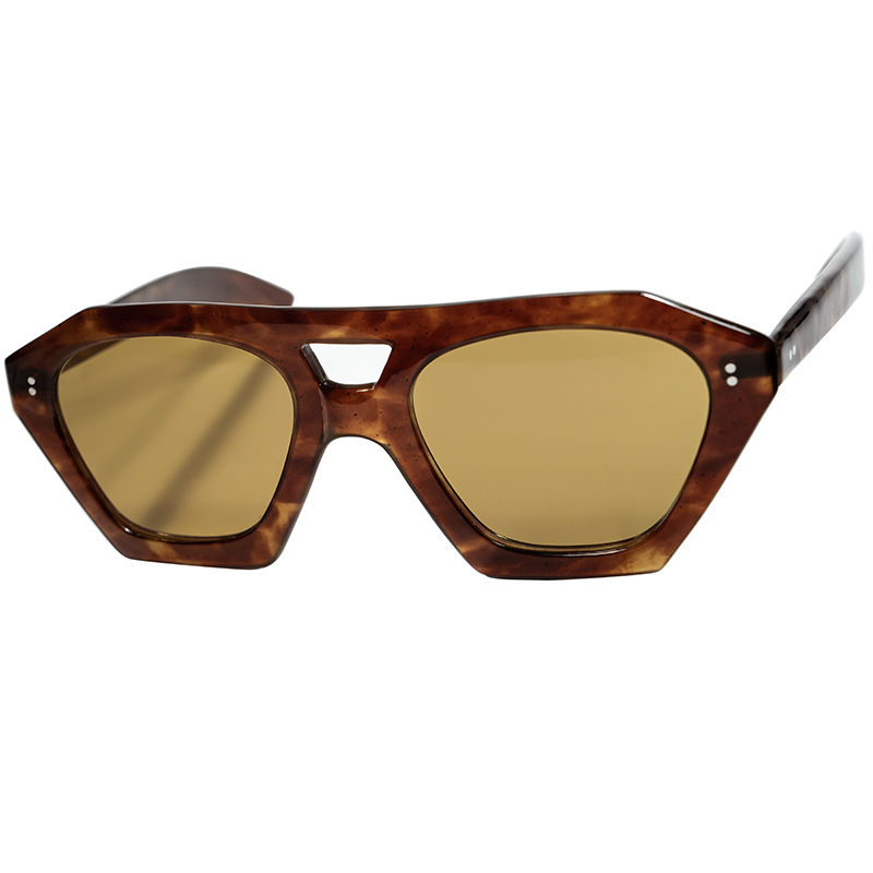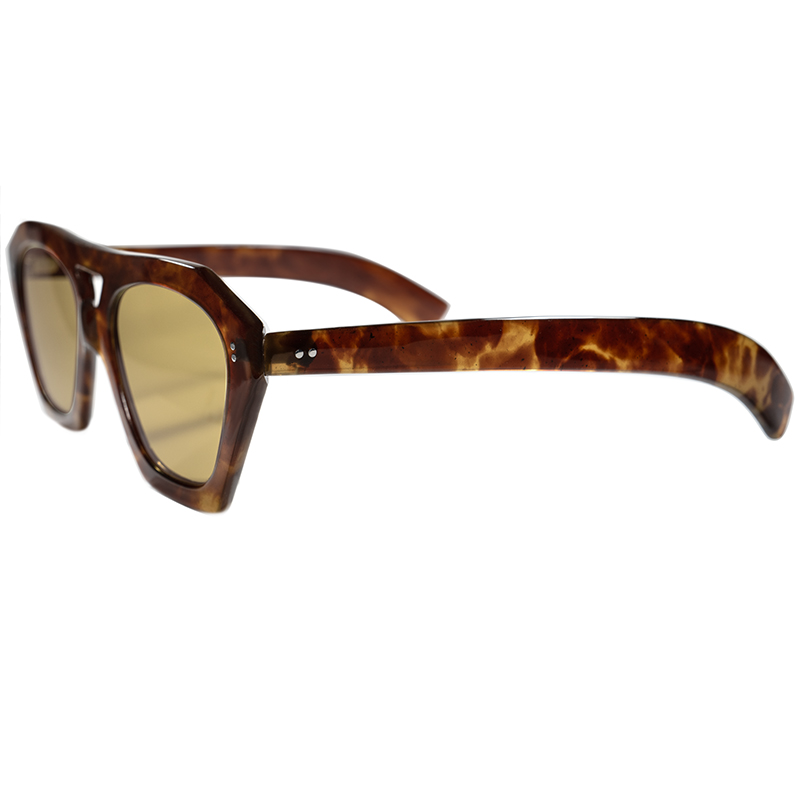 そこに芯なしの太めなテンプル、そして荒々しさの残る当時のセルロイド独特の生地感やハンドメイドらしい良い意味で不揃いな佇まいと、